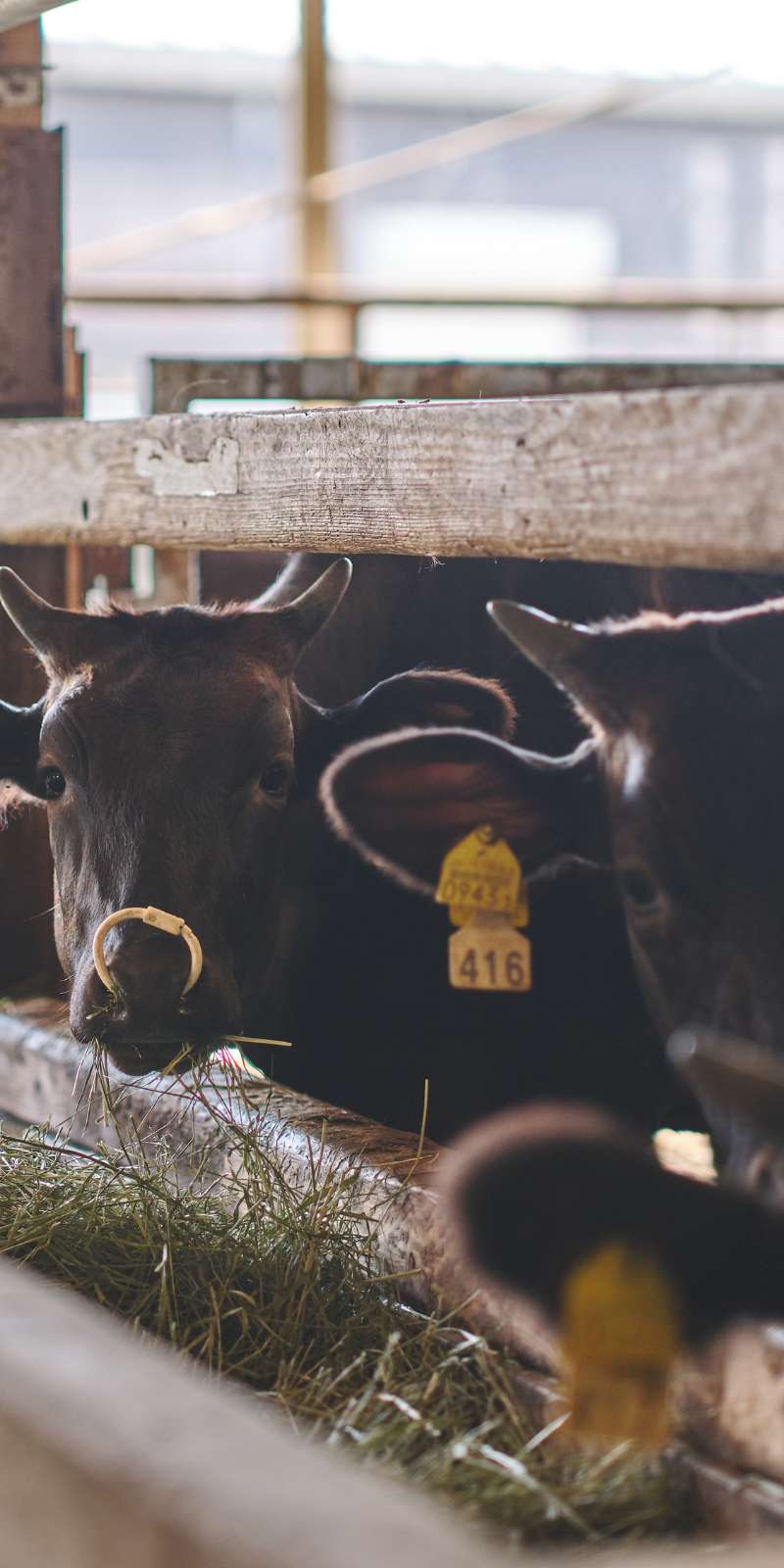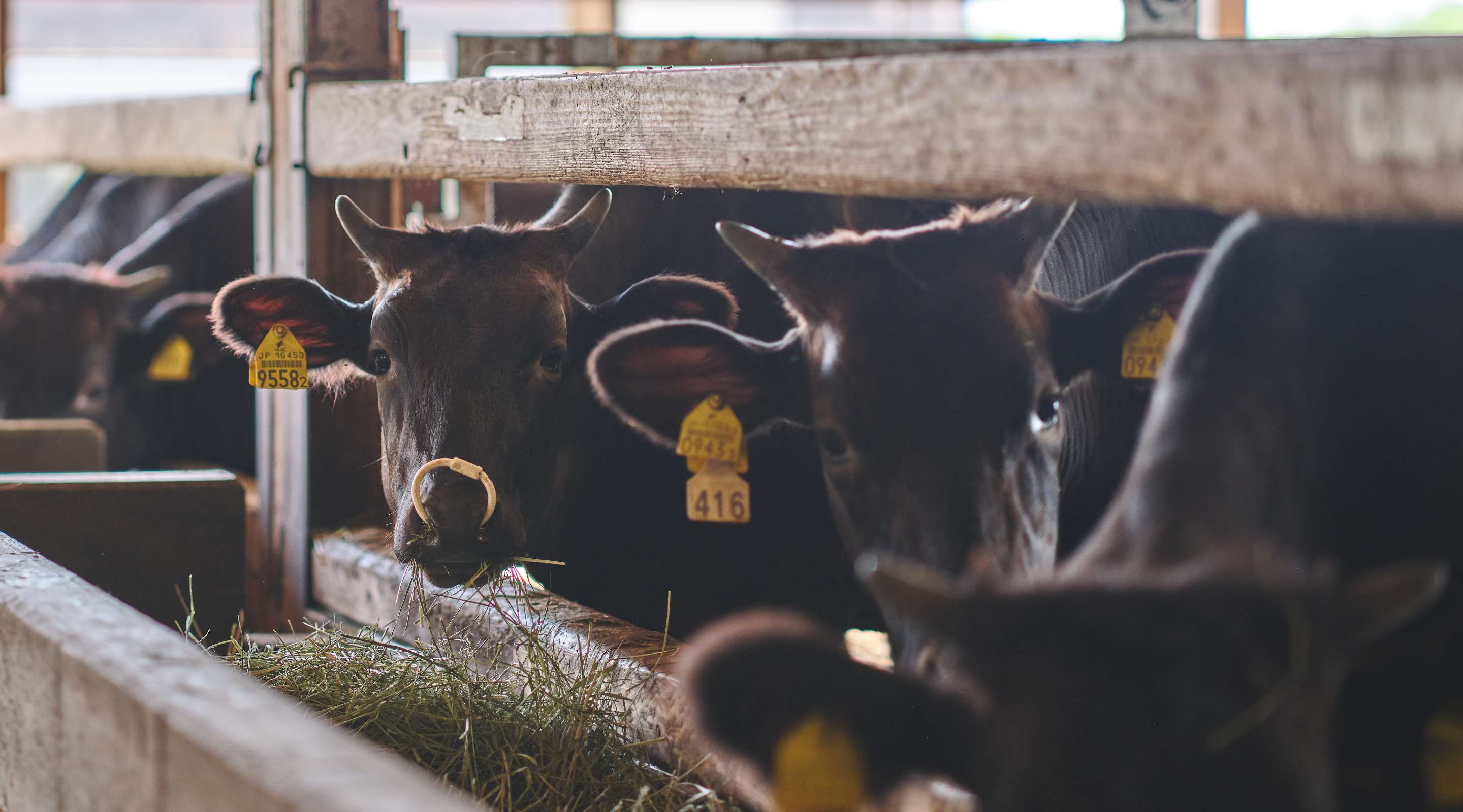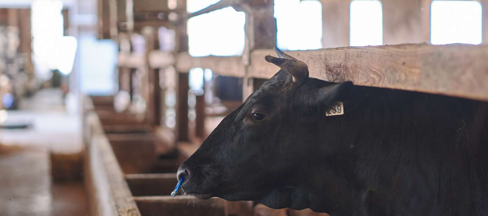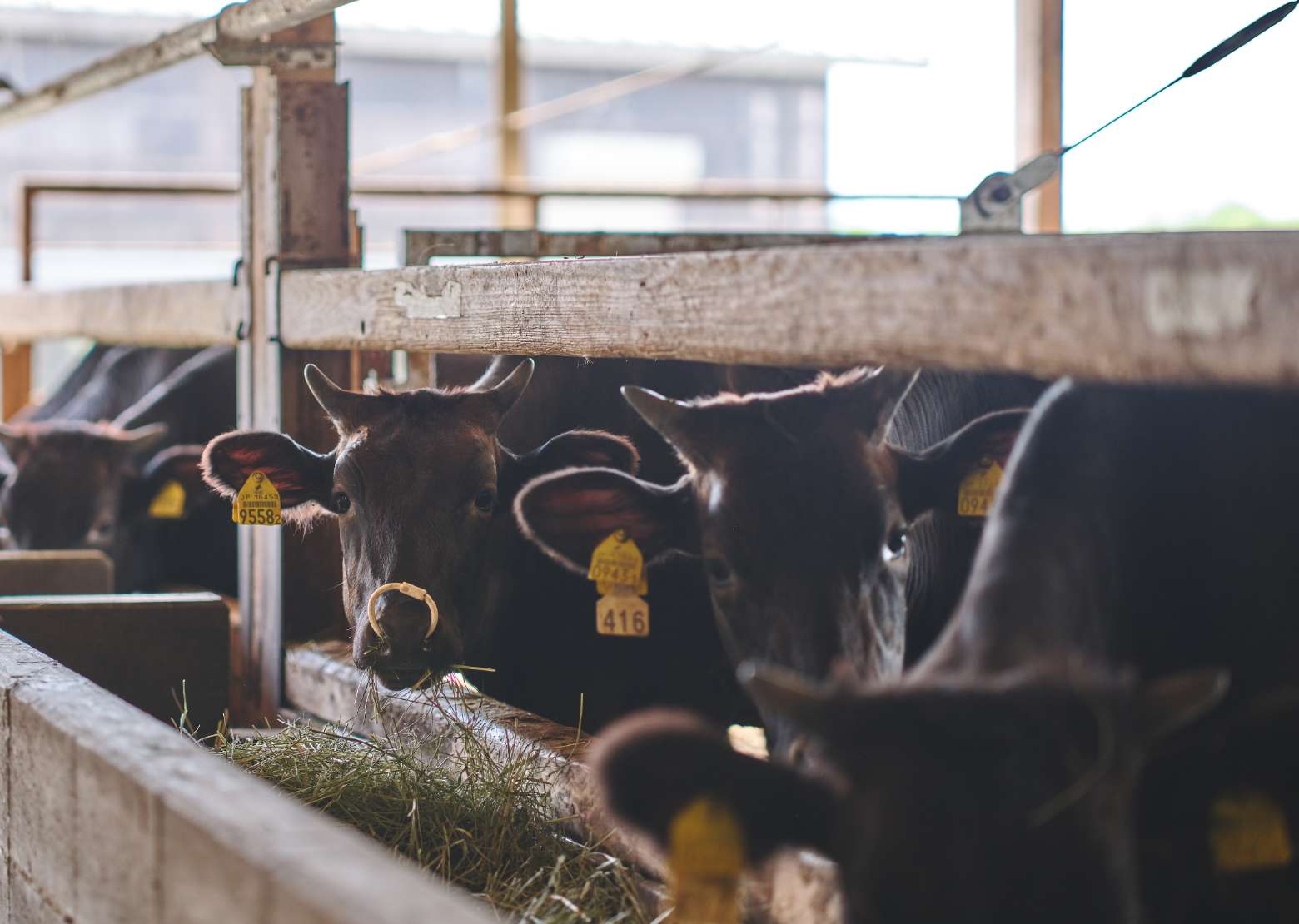 子牛の時は、しっかりと牧草を与え、腹作りをして、穀物に耐えられるようになってから、お米を配合した穀物を与えていきます。その間欠かさず乳酸菌を与え体調管理をし、ゆっくり元気に昔ながらの30ヶ月を超える長期肥育を実施しています。するとその筋肉(タンパク質)には、うま味成分グルタミン酸の素となるアミノ酸がしっかりと醸成されていくのです。早期出荷される牛たちとの違いがここにあります。